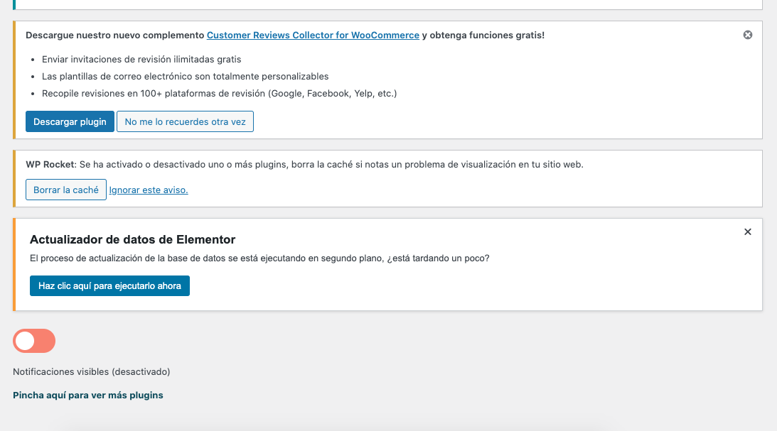 Actualizaciones constantes de plugins como Elementor, WooCommerce, WP Rocket, etc.